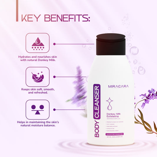 SARCOSINATESIndulge your skin in a luxurious cleansing experience with Miracara Body Cleanser. Infused with gentle, skin-loving ingredients, this body wash deeply cleanses while maintaining your skin’s natural moisture barrier. It lathers richly, rinses easily, and leaves your skin feeling refreshed, soft, and lightly scented.